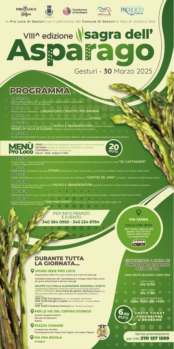 Domenica 30 marzo 2025 Gesturi si prepara ad accogliere l’ottava edizione della Sagra dell’Asparago Selvatico: un evento imperdibile tra tradizione e gusto.