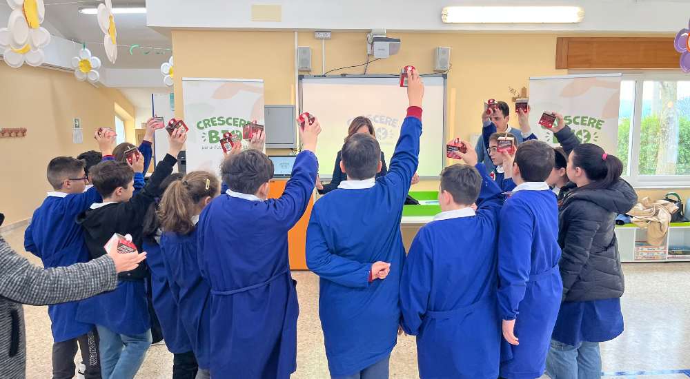 Ultima tappa il 14 aprile a Teverola (CE). L’attività ludico-formativa è iniziata in aula, ma prosegue a casa, dove, grazie a un codice QR Code posto sulla confezione della Melannurca Campana IGP, le famiglie possono accedere all’opuscolo informativo, un momento importante per stimolare la riflessione sull’educazione alimentare, la sostenibilità ambientale e il cibo di qualità del territorio.