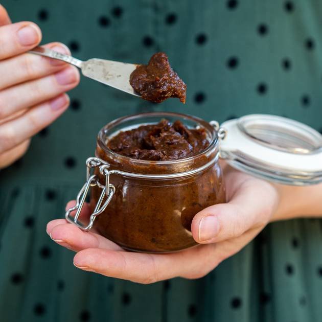 Mettere tutto nel “salaturo” (vaso di terracotta destinato all’uso in cucina) e cuocere a bagnomaria, a fuoco molto lento per almeno 8 ore o almeno fino a quando diventa “cioccolato”. Dovrà risultare una crema morbida e estremamente liscia.