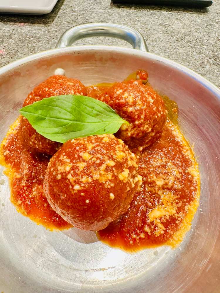 Il peperone “mbuttunato”, la melanzana a “pollastiello”, le polpette al sugo, la parmigiana, sono solo alcuni dei piatti che con la loro ricchezza, seppur adattata alla richiesta di maggior leggerezza rispetto al passato che oggi chiede il mercato, ci riportano alla sontuosità della cucina partenopea di una volta, quella dei monsù per intenderci.