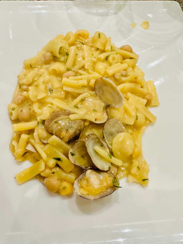 Un piatto fresco nel quale alla morbidezza del legume viene contrapposta la sapidità della vongola verace che conferisce una spinta potente di gusto.