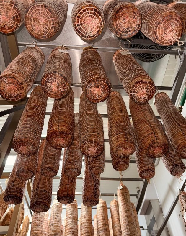 Uno degli elementi distintivi di questa realtà è l’attenzione all’alimentazione dei suini, allevati con cereali, legumi e persino frutta fresca e secca coltivati direttamente in azienda. Una scelta che si traduce in carni pregiate, dal sapore autentico e dalla qualità superiore.
