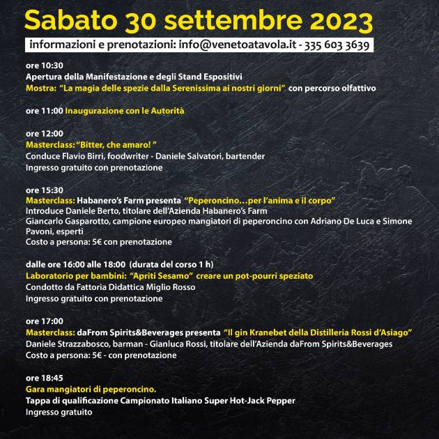 M’illumino di spezie è il titolo dell’appuntamento targato Veneto a Tavola, dove si potrà esplorare l’uso delle spezie nella gastronomia, nella liquoristica, nella mixologia e nel benessere.