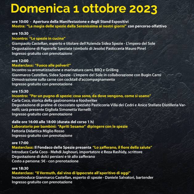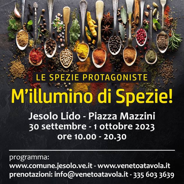 Le spezie a tutto campo: un modo per amarle, apprezzarle e soprattutto conoscerle. Dopo l’edizione veneziana (Pescheria di Rialto, settembre 2021) la manifestazione approda a Jesolo in piazza Mazzini sabato 30 Settembre e domenica 1° Ottobre 2023.