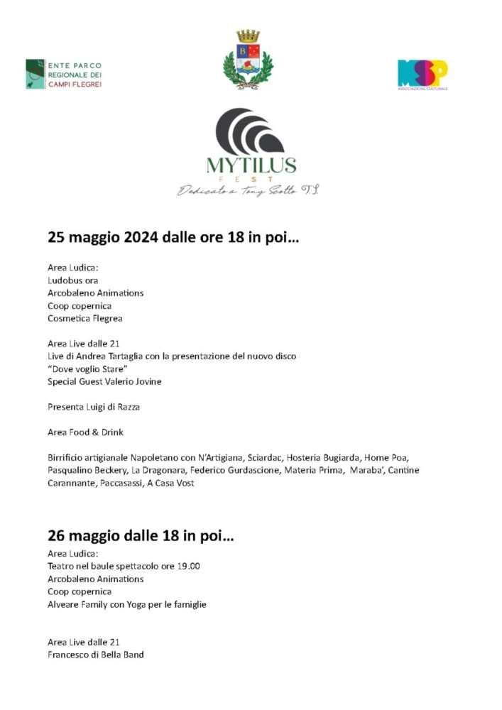 Qui il programma completo di Mytilus Fest del 25 e 26 maggio 2024 e i riferimenti per eventuali informazioni prenotazioni.
