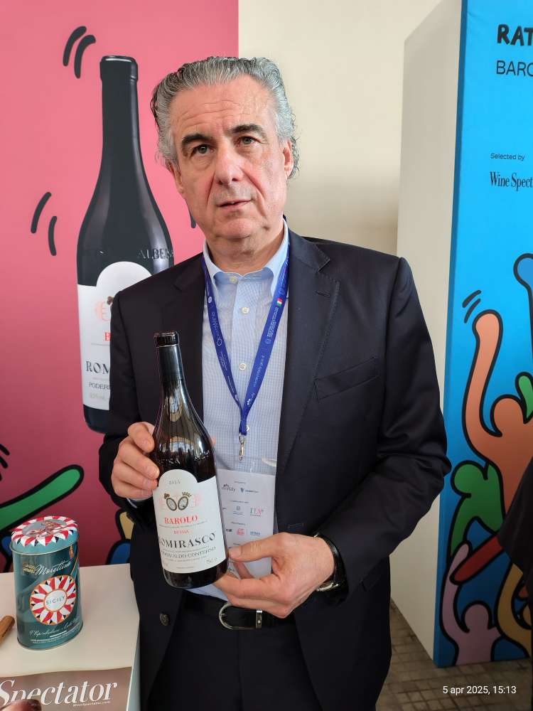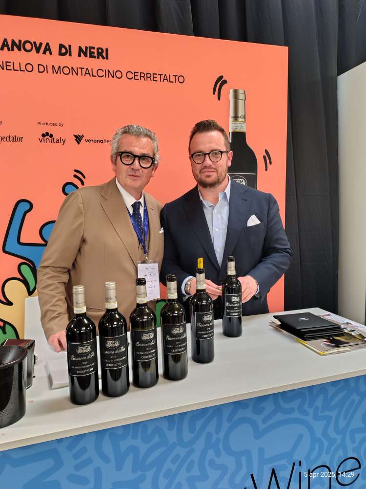 In un contesto del livello di OperaWine risulta impossibile che non compaiano anche tanti vini toscani, e infatti ecco la foto con Giovanni Neri (Casanova di Neri) e il suo Brunello di Montalcino Cerretalto 2018; un’annata di Brunello che non amo particolarmente – frettolose e immeritate, a mio avviso, le quattro stelle assegnate a suo tempo, io non sarei andato oltre le tre – ma che, quando è così ben interpretata, dà luogo comunque a vini eccellenti come questo.