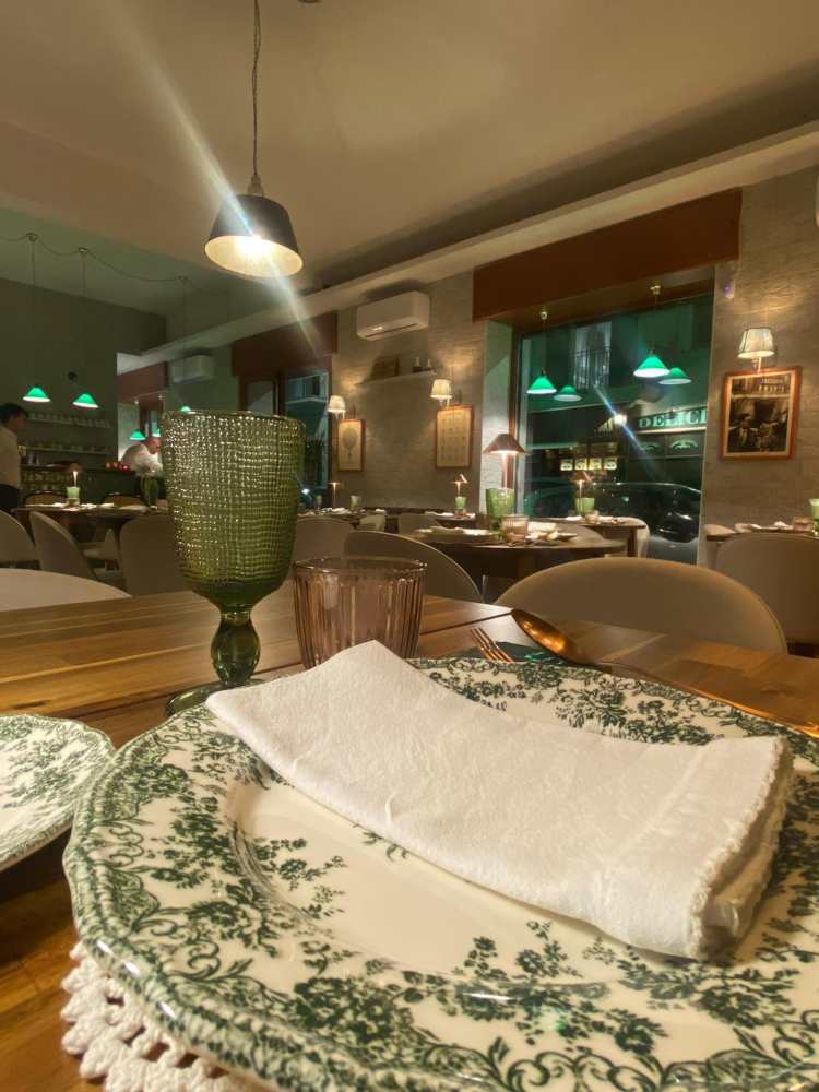 Il ristorante è nuovo, aperto da pochi mesi, arredato in modo discreto, legno vivo, pareti chiare, mise en place in stile inglese, qualche centrino a ricordare le case delle nonne del ‘900, stampe di vecchi film alle pareti, il tutto sempre senza strafare.