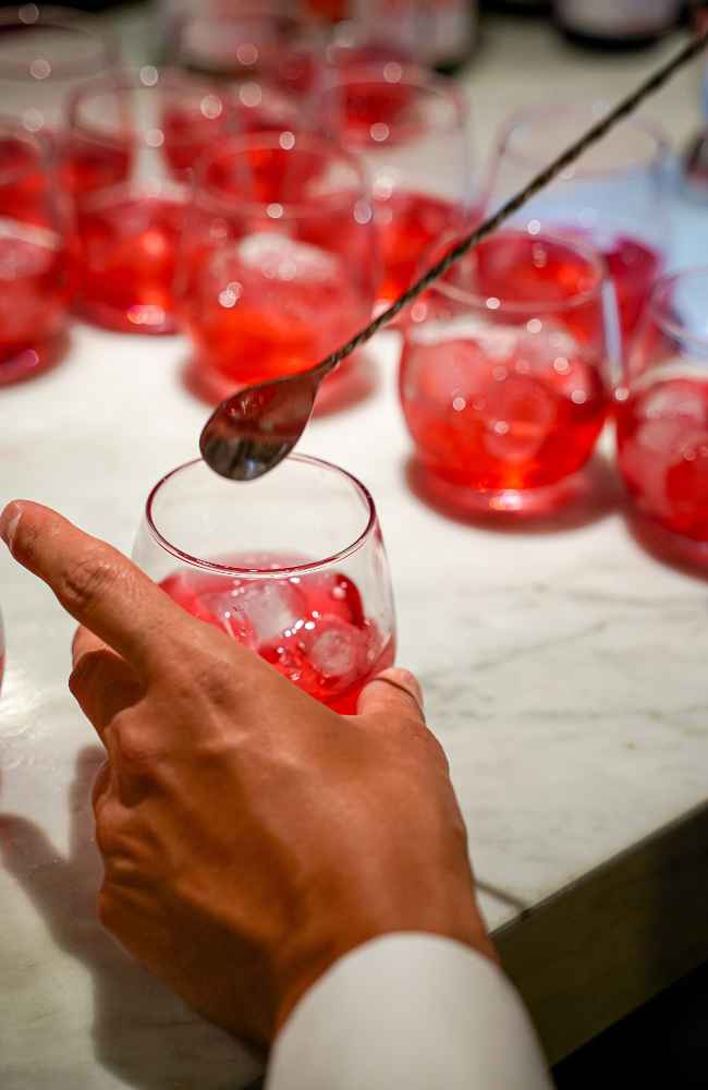 A chiudere la cena, la Pizza fritta di Salvo e il Drymisù di Dry. La pizza fritta, ripiena di ricotta di bufala, provola affumicata, cicoli di maiale e pepe rosso di Sarawak, è stata l’abbinamento ideale per il Mirtillo Negroni, mentre il Drymisù ha offerto un fine pasto sofisticato e avvolgente con la sua combinazione di cioccolato fondente, cubotto glassato al caffè, crema al mascarpone e polvere.