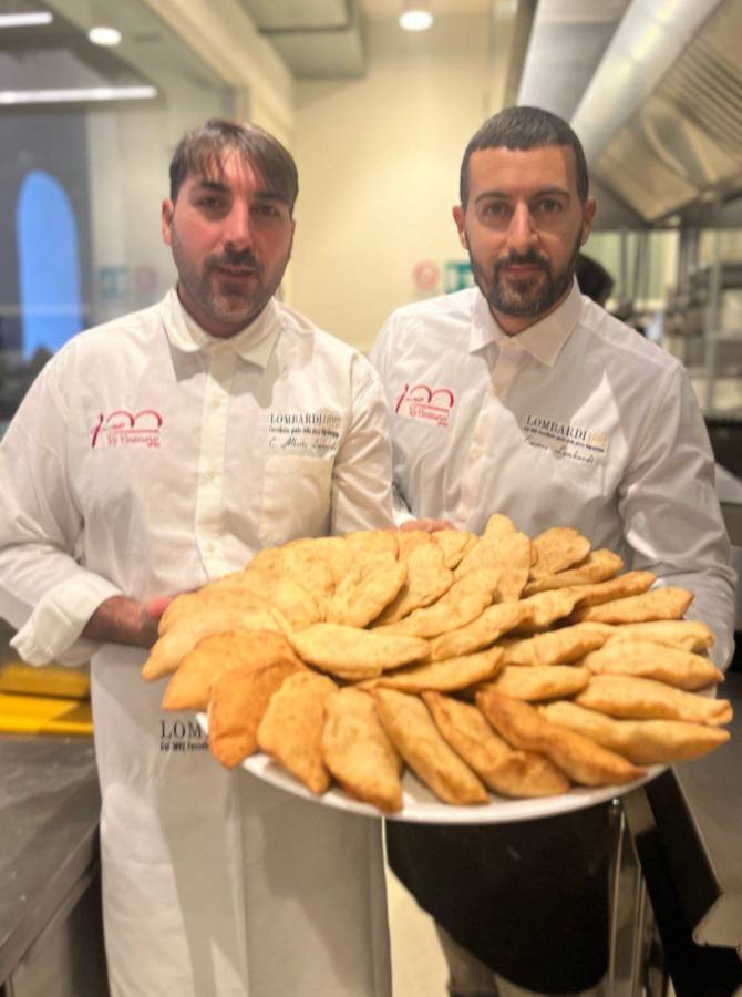 La chef per realizzare il menù ha coinvolto altre realtà, storiche e identititarie, del panorama gastronomico della città, tra questi i cugini Enrico e Carlo Alberto Lombardi della storica pizzeria Lombardi 1892 a Via Foria, quinta generazione di pizzaioli che porta avanti, dal banco, con le loro pizze, ogni giorno, la storia di famiglia, riuscendo a rinnovarla con le loro personalità e idee, ma tenendola salda come le foto alle pareti che raccontano una realtà centenaria della nostra città.
