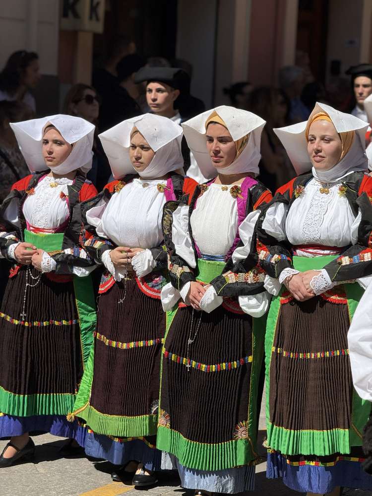 I numeri sono impressionanti. 70 gruppi di devoti a piedi, per un totale di circa 2.800 persone in abito tradizionale. Oltre 200 cavalieri, 56 miliziani divisi in quattro plotoni, a simboleggiare la protezione del santo e 80 suonatori di launeddas.