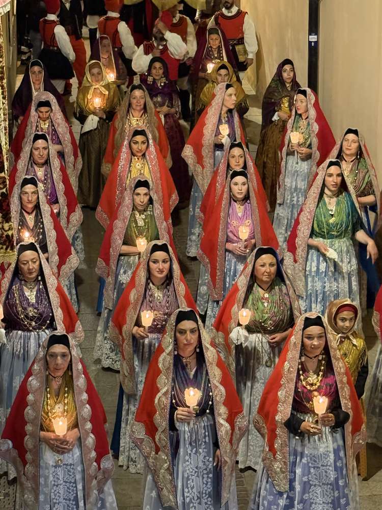 La processione è stata guidata da Marzia Cilloccu. L’Alter Nos, che con la fascia tricolore e il Toson d’Oro – un antico simbolo di onore risalente al regno di Carlo II di Spagna – rappresenta il sindaco e l’amministrazione comunale.
