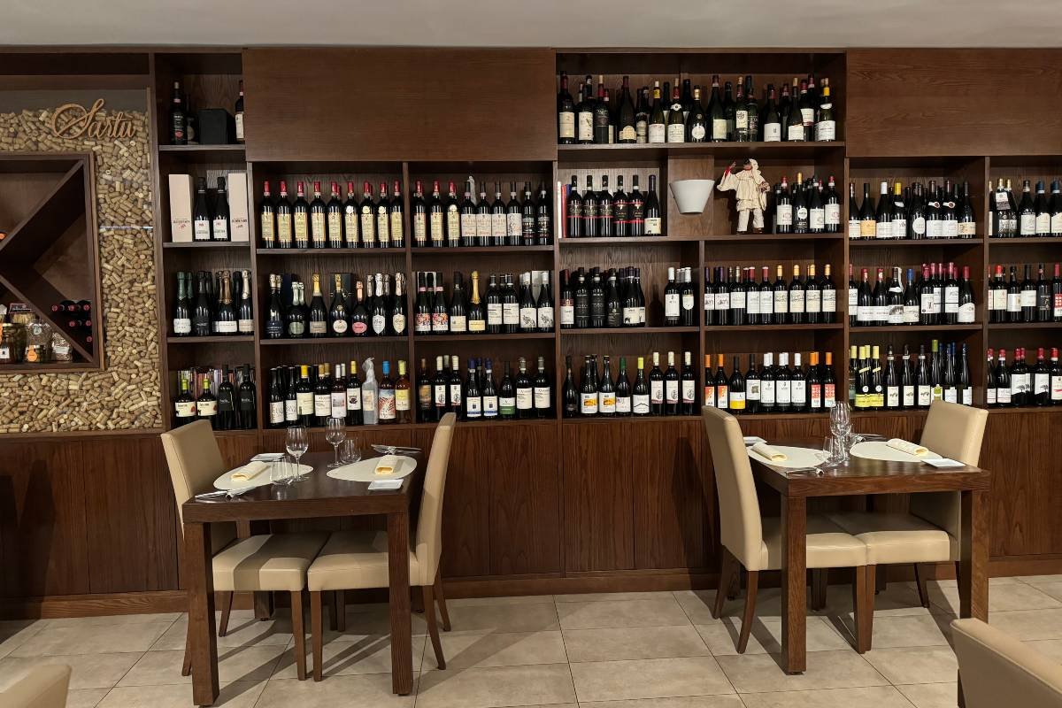 Alle pareti quadri con le locandine del Teatro San Carlo, opere storiche e uniche, come quella firmata da Manilo Manara. Oltre alla libreria, a disposizione degli ospiti e degli amici, una grande cantina selezionata e raccontata nel nome della biodiversità e delle tutela dei piccoli vitigni. Sartù colpisce immediatamente, già nell’atmosfera, ma non si ferma qui. Perché dietro ogni scelta, ogni proposta, c’è di più, molto di più.